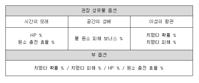 성유물의 주옵션과 유효옵션도 알려드리겠습니다.