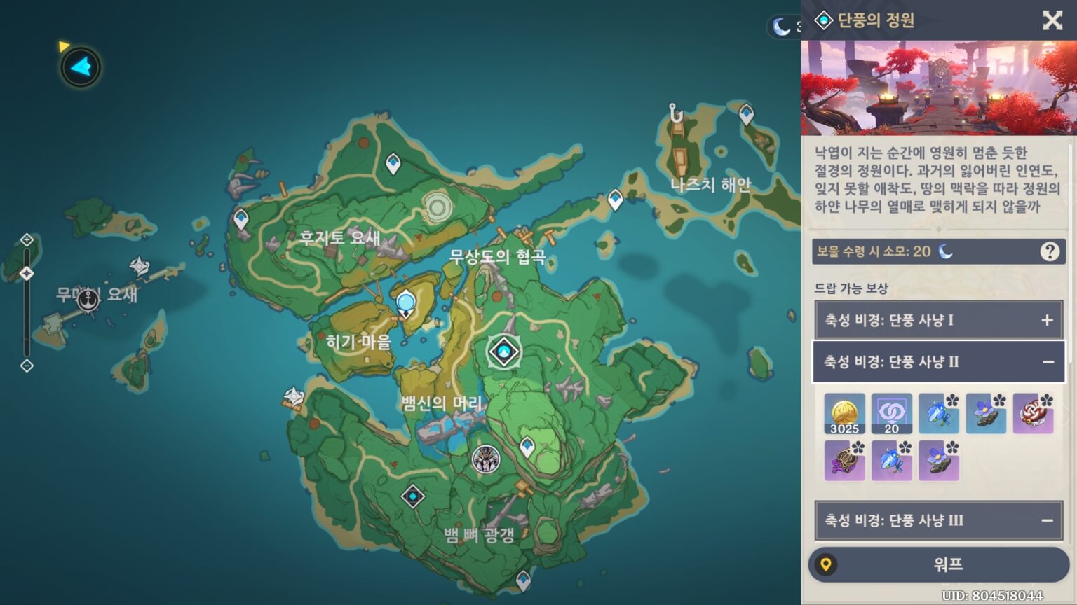단풍의 정원에서 획득할 수 있으며, 이나즈마 지역 야시오리섬에 위치합니다.