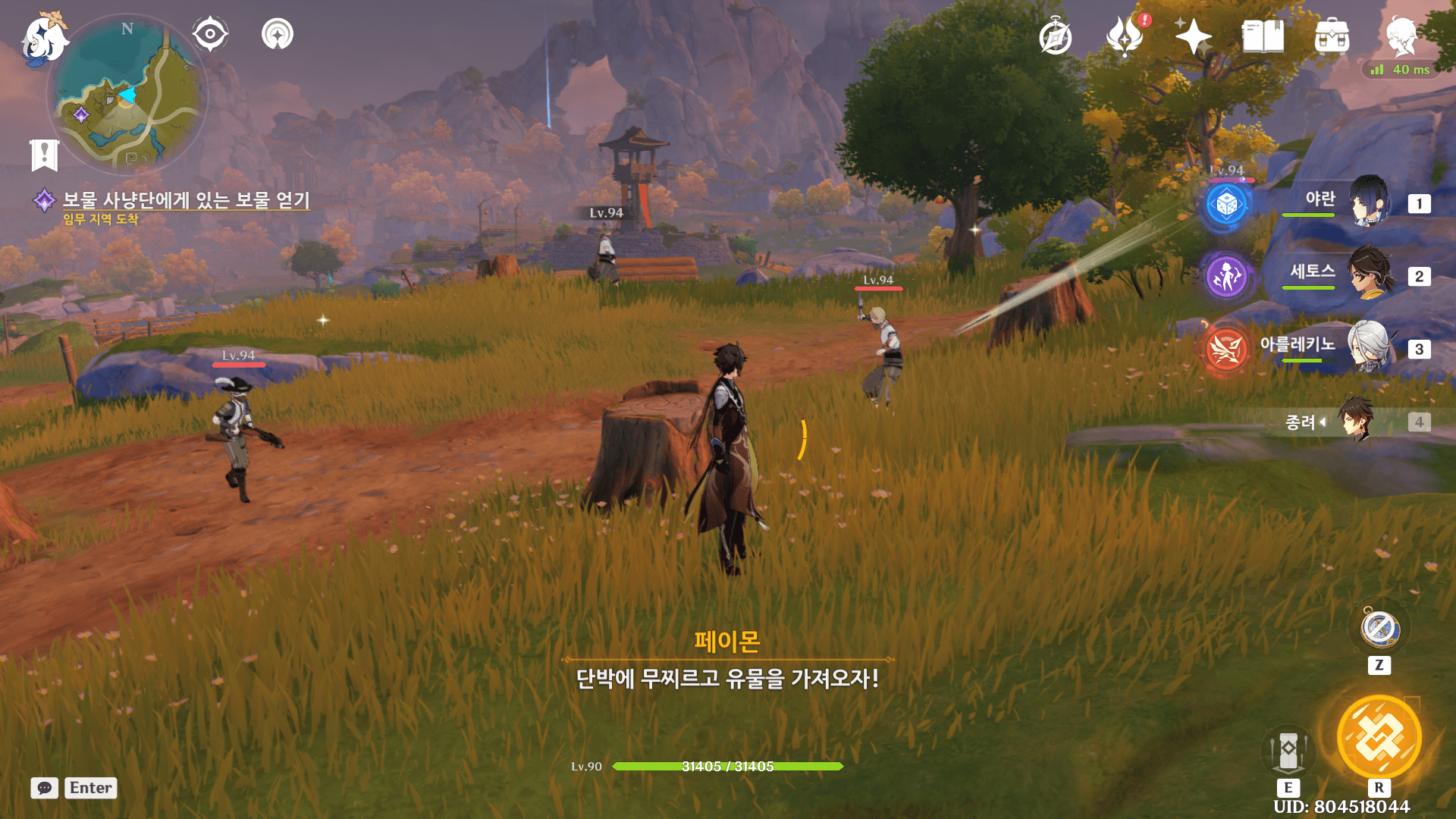 페이몬: 단박에 무찌르고 유물을 가져오자!